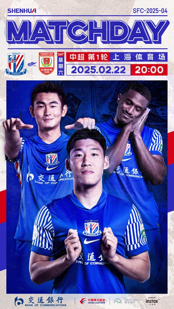 中超首轮|申花vs亚泰首发:5外援PK3外援,杨皓宇先发,徐浩峰出战