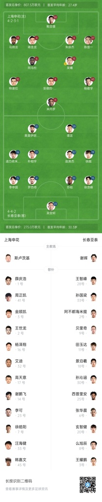 02月22日讯 北京时间今晚20点,中超新赛季首轮,上海申花vs长春亚泰,赛前首发阵容公布。