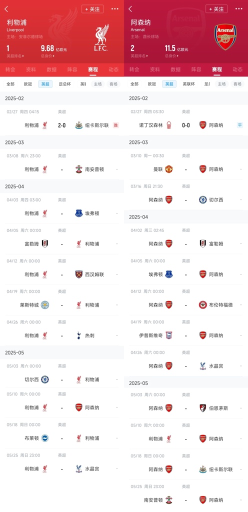 2月27日讯 英超第27轮结束,利物浦2-0纽卡,阿森纳0-0森林,英超前二的分差已经达到13分。