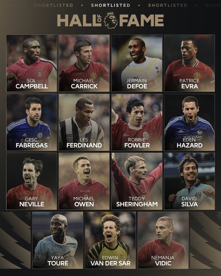 2025英超名人堂15人候选公布:阿扎尔、小法、D席、欧文、图雷…