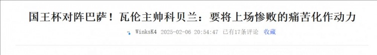 【相关新闻】:国王杯对阵巴萨!瓦伦主帅科贝兰:要将上场惨败的痛苦化作动力